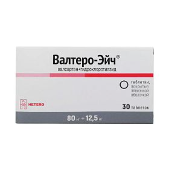 Препарат Валтеро-Эйч® — комбинированный гипотензивный препарат, в состав которого входят антагонист рецепторов ангиотензина II и тиазидный диуретик.