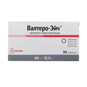 Валтеро-Эйч таблетки покрытые плёночной оболочкой 80мг+12,5мг №30