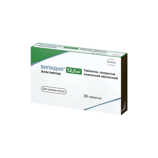 Рекомендуемая доза препарата Випидия составляет 25 мг один раз в сутки в качестве монотерапии или в дополнение к метформину, тиазолидиндиону, производным сульфонилмочевины или инсулину, или в качестве трёхкомпонентной комбинации с метформином, тиазолидиндионом или инсулином. Препарат Випидия может приниматься независимо от приёма пищи. Таблетки следует проглатывать целиком, не разжёвывая, запивая водой.