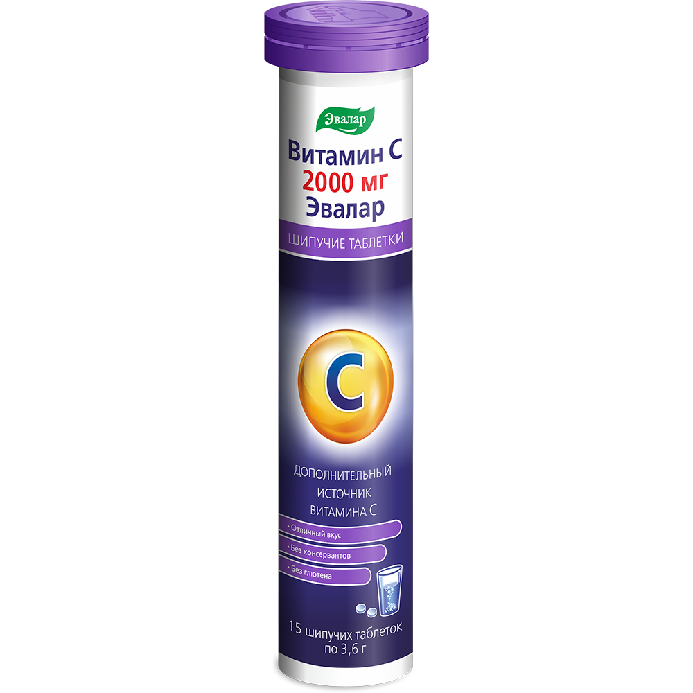 Витамин С 2000мг Эвалар таблетки шипучие массой 5г №20