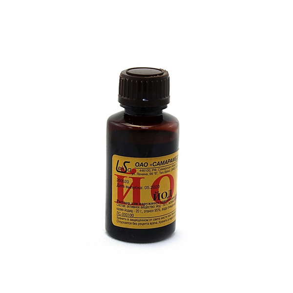 вспомогательные вещества: калия йодид 20 г, этанол 95 %, вода очищенная поровну до 1 л.