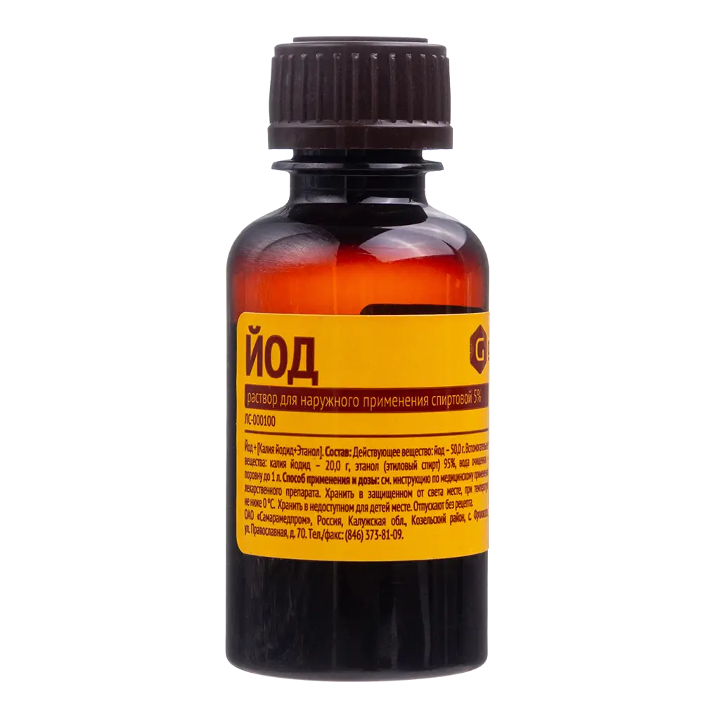 вспомогательные вещества: калия йодид 20 г, этанол 95 %, вода очищенная поровну до 1 л.