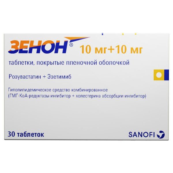 ХС поступает в плазму крови в результате всасывания в кишечнике и эндогенного синтеза. Препарат Зенон® содержит эзетимиб и розувастатин, два гиполипидемических компонента, дополняющих друг друга по механизму действия. Комбинация розувастатин + эзетимиб снижает повышенную концентрацию общего холестерина (ОХС) в плазме крови, холестерина липопротеинов низкой плотности (ХС-ЛПНП), аполипопротеина В (АпоВ), триглицеридов (ТГ) и холестерина липопротеинов невысокой плотности (ХС-не-ЛПВП, рассчитывается как разность между концентрацией ОХС и концентрацией ХС-ЛПНП) и повышает концентрацию в плазме крови холестерина липопротеинов высокой плотности (ХС-ЛПВП) путем двойного ингибирования, как абсорбции, так и синтеза ХС.