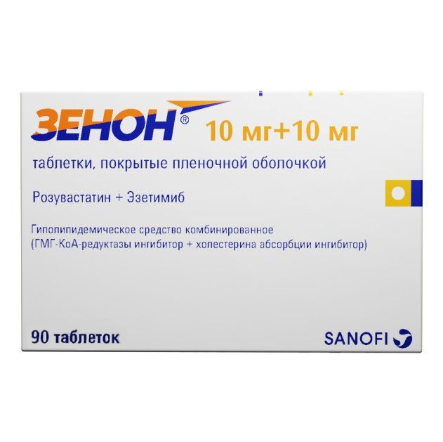 ХС поступает в плазму крови в результате всасывания в кишечнике и эндогенного синтеза. Препарат Зенон® содержит эзетимиб и розувастатин, два гиполипидемических компонента, дополняющих друг друга по механизму действия. Комбинация розувастатин + эзетимиб снижает повышенную концентрацию общего холестерина (ОХС) в плазме крови, холестерина липопротеинов низкой плотности (ХС-ЛПНП), аполипопротеина В (АпоВ), триглицеридов (ТГ) и холестерина липопротеинов невысокой плотности (ХС-не-ЛПВП, рассчитывается как разность между концентрацией ОХС и концентрацией ХС-ЛПНП) и повышает концентрацию в плазме крови холестерина липопротеинов высокой плотности (ХС-ЛПВП) путем двойного ингибирования, как абсорбции, так и синтеза ХС.