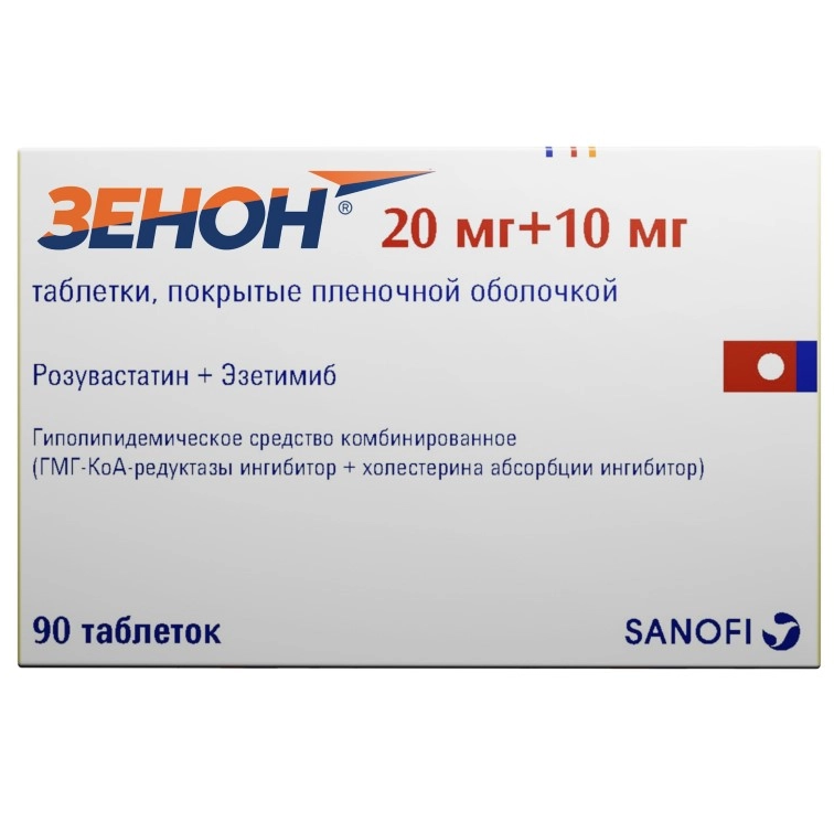 ХС поступает в плазму крови в результате всасывания в кишечнике и эндогенного синтеза. Препарат Зенон® содержит эзетимиб и розувастатин, два гиполипидемических компонента, дополняющих друг друга по механизму действия. Комбинация розувастатин + эзетимиб снижает повышенную концентрацию общего холестерина (ОХС) в плазме крови, холестерина липопротеинов низкой плотности (ХС-ЛПНП), аполипопротеина В (АпоВ), триглицеридов (ТГ) и холестерина липопротеинов невысокой плотности (ХС-не-ЛПВП, рассчитывается как разность между концентрацией ОХС и концентрацией ХС-ЛПНП) и повышает концентрацию в плазме крови холестерина липопротеинов высокой плотности (ХС-ЛПВП) путем двойного ингибирования, как абсорбции, так и синтеза ХС.