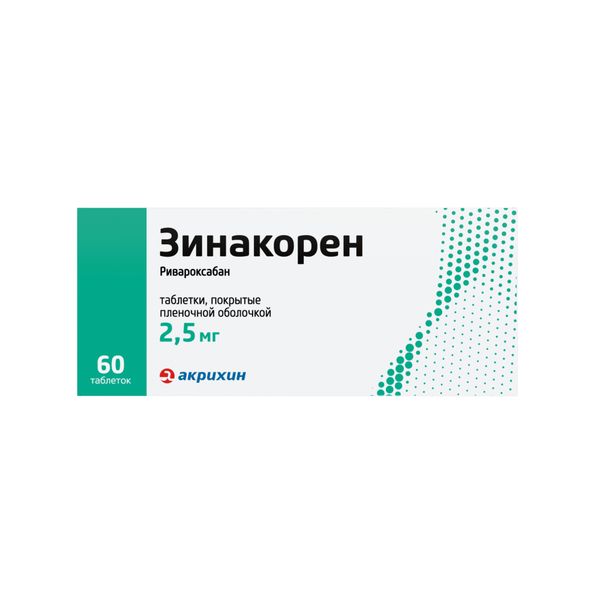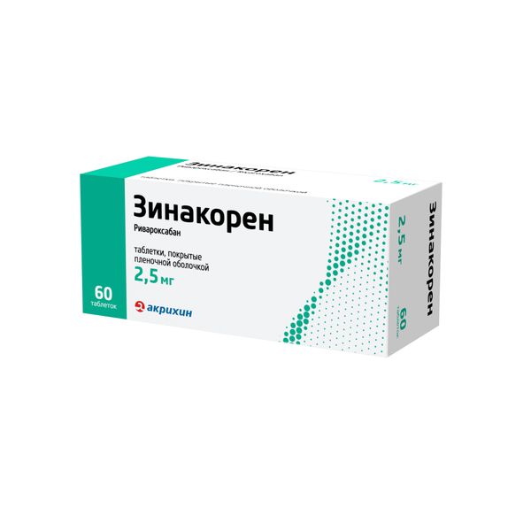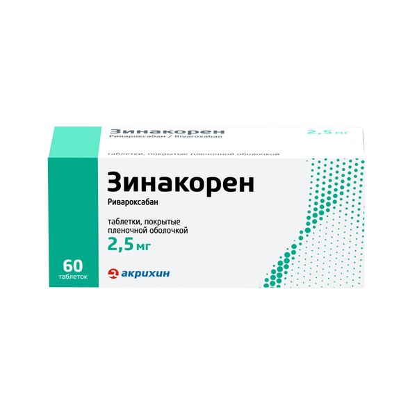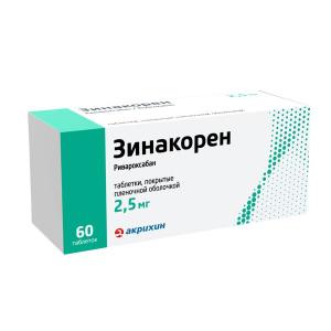 Препарат Зинакорен содержит действующее вещество — ривароксабан, который относится к антитромботическим средствам (антикоагулянтам), т.е. лекарственным препаратам, блокирующим образование тромбов. Его действие основано на подавлении фактора свёртывания крови (прямой ингибитор фактора Ха) и снижении образования тромбина, что приводит к уменьшению формирования тромбов в кровеносных сосудах.