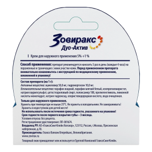 Применение Зовиракс® Дуо-Актив во время беременности и в период грудного вскармливания не рекомендуется, за исключением случаев, когда оно назначено врачом (если предполагаемая польза для матери превышает потенциальный риск для плода и ребёнка).