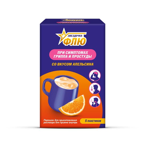 Звездочка флю порошок для приготовления раствора для приема внутрь апельсиновый пакетики №5